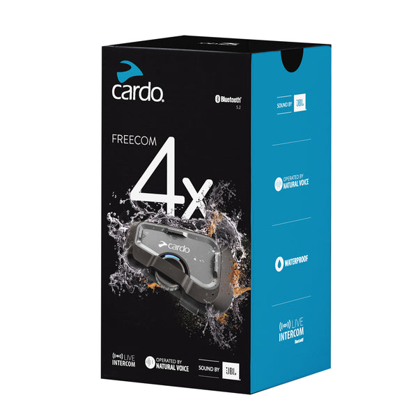 At the top of Cardo’s Freecom range sits the Freecom 4X. With the ability to connect up to 4 riders at a range of 0.75 miles and to use voice commands (Natural Voice Operation), this unit provides premium features in a slim and compact design. Updates to the unit include Live Intercom featuring auto-reconnect, Over-the-Air software updates, the switch to USB type-C connector and the latest Bluetooth 5.2 connection. 40mm JBL speakers provide some of the clearest and loudest audio on the market and the bevy of features we’ve come to know in the Freecom 4 range make the Freecom 4X a must have.