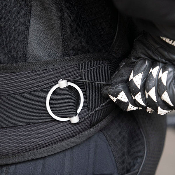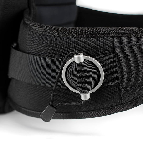 Kriega’s signature alloy adjusters that set the waist tension in seconds and eradicate loose strap ends, giving a clean, uncluttered harness design.