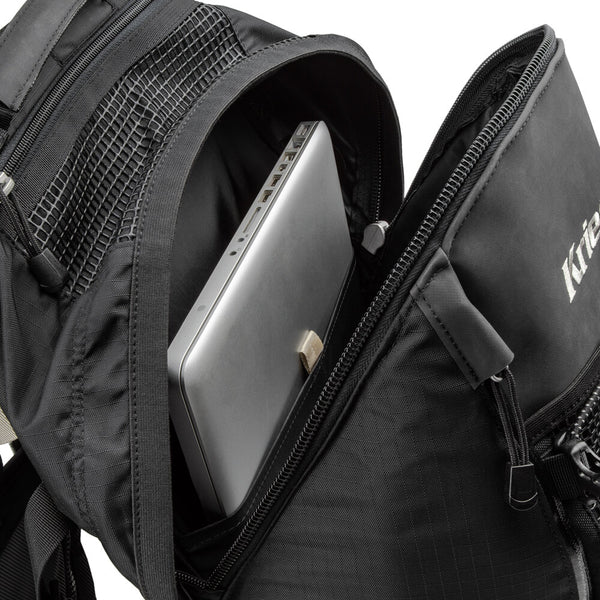 An inner sleeve pocket is ideal to store a laptop and is compatible with a hydration reservoir and/or a back protector.