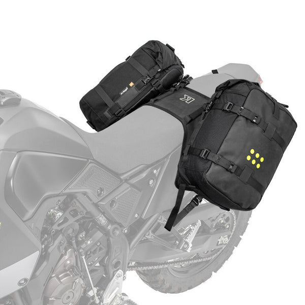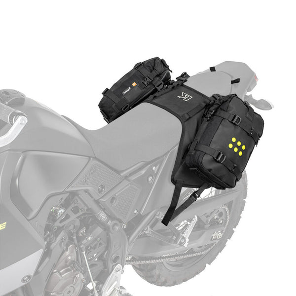 The OS-BASE is an 'over the seat harness' which allows OS-6, OS-12 or OS-18 ADVENTURE PACKS to be mounted as soft panniers. No additional frames are required, this system provides a super-tough, lightweight carrying solution for the Yamaha Tenere 700 with no drilling or permanent bodywork alterations to the bike.