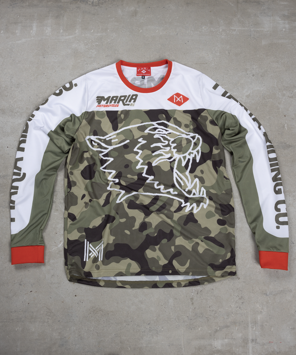 Maria jersey long-sleeved shirts were designed to keep you comfortable, fresh and dry while riding your motorcycle. Either scrambling on dirt or gliding in the asphalt, these jerseys will make you feel light, free, and dressed up for the occasion. With a hint from old time races the "Dirty Jerseys" collection possess the bold and distinctive style that characterizes Maria.
