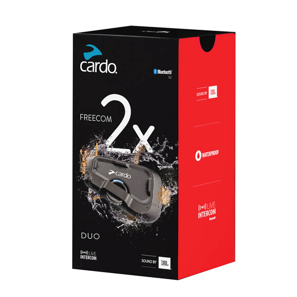 The Cardo Freecom 2X Headset builds off the very successful Freecom 2+. Adding 40mm JBL speakers, Over-the-Air software updates and the latest Bluetooth 5.2 connection Cardo has pushed the offerings of the Freecom line forward. The staples from the Freecom 2X’s predecessor are still found, such as two channels for smartphone and GPS connection, waterproofing, FM radio and universal connectivity to other bluetooth intercom devices. The Freecom 2X will keep you connected to your passenger or another rider and enhance the experience of any ride.