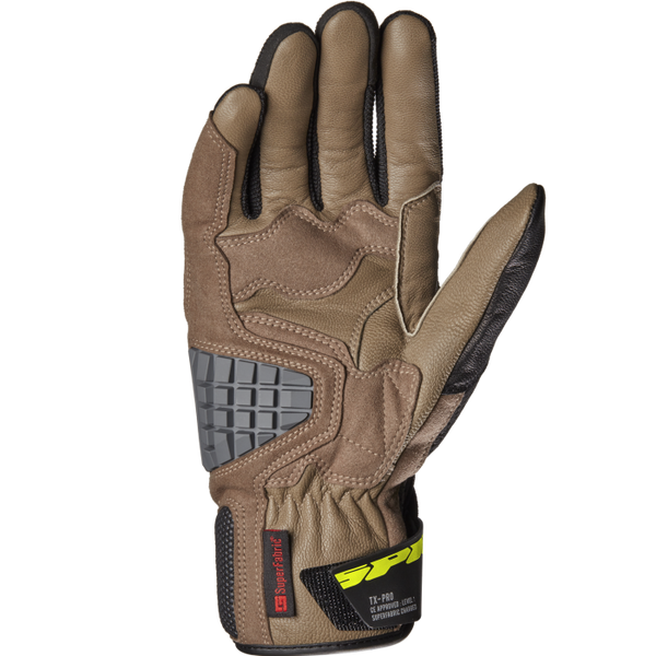 The SPIDI TX-PRO is a glove for technical riders who need both top notch protection and extreme versatility. The gloves have passed the demanding testing required to carry the EN13594:2015 KP CE safety certification, thanks in part to the abrasion resistant goat leather chassis (0.6mm to 0.8mm), the external Warrior Shields on the outside of the hand, and the armored knuckles. For additional safety when riding at night there are reflective zones built into the TX-PRO, as well as helmet wiper to help keep your vision clear when you get caught in the rain. There are double-layer leather sections over the palms to ensure excellent abrasion resistance, and the gloves have punched mesh sections for breathability.