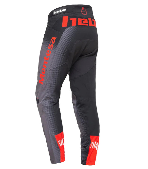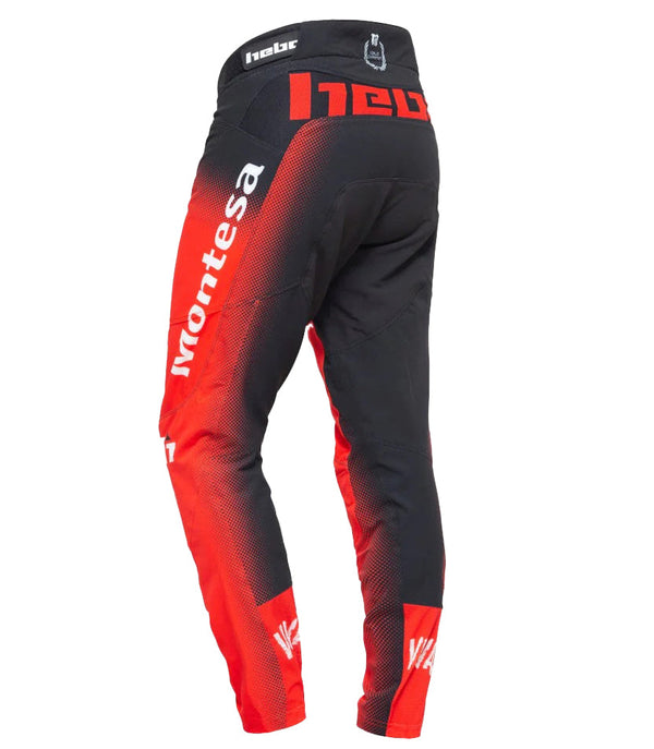 Introducing the Hebo Montesa Classic Pants - they're all about that sleek, minimalist design, featuring a brand-new fit and premium materials that truly set the bar in the world of MX and Enduro. Hebo has upped the game with a relaxed fit, 4-way stretch fabrics all around, and a whole bunch of waistband adjustments to guarantee unmatched comfort when riders tear it up on their bikes. These pants offer an articulated fit for supreme comfort, tough 4-way stretch polyester, a slim, boot-friendly bottom hem, breathable inner mesh, anti-shift silicone print on the waistband, laser-ventilated perforations, and double velcro and micrometric ratchet adjustments on the waistband for a tailored fit. Plus, there's stretch mesh on the back for top-notch airflow.