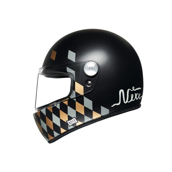Elevate your riding experience with the Nexx X.G100R helmet, a fusion of vintage racing nostalgia and modern technology. Crafted from premium materials, its lightweight yet sturdy Full Carbon or X-Matrix shell combines fiberglass, organic fibers, aramid fibers, and carbon reinforcement. The modern-classic flat visor, made of unbreakable PC Lexan, offers optical clarity and anti-scratch protection, with an option for a Raleri fog-free lens. Enjoy enhanced comfort and fitting through two shell sizes, while the X-Mart Dry technology guarantees a soft touch, efficient cooling, and quick drying – perfect for any weather. The luxurious interior is fully removable, washable, and anti-allergic, ensuring an ideal ride every time. The dynamic flow-through chin ventilation, controlled by a convenient on/off switch, enhances air circulation. And with the integrated chin wind stopper, wind noise and drafts are minimized, promising an uninterrupted journey. Revolutionize your ride today with the Nexx X.G100R – where classic design meets contemporary performance.