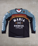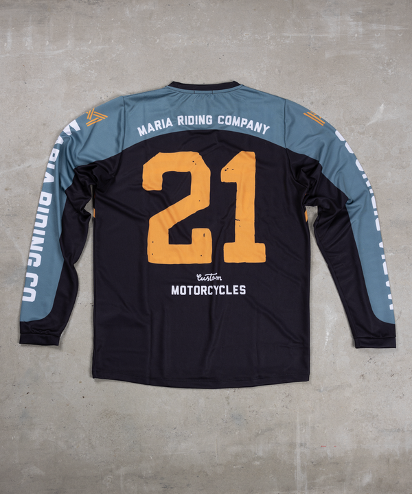 Maria jersey long-sleeved shirts were designed to keep you comfortable, fresh and dry while riding your motorcycle. Either scrambling on dirt or gliding in the asphalt, these jerseys will make you feel light, free, and dressed up for the occasion. With a hint from old time races the "Dirty Jerseys" collection possess the bold and distinctive style that characterizes Maria.