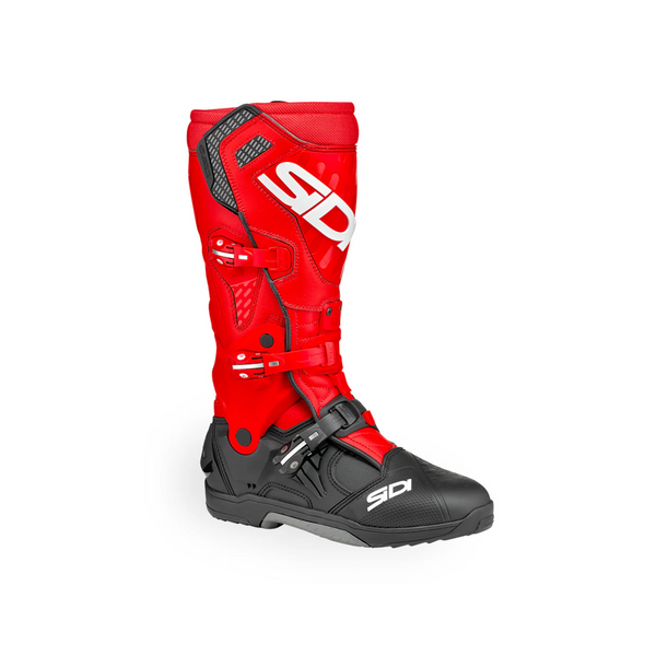 A boot that set the bar higher. Used by Pro riders in MX, hard Enduro and Superenduro, Crossair delivers all the solidity of a premium Sidi boot in just 1665 grams (size 43), making it much lighter than anything else. An internal fiberglass-reinforced esoskeleton delivers all the support and safety while maintaing an incredible light construction. Its sole compound, Materiis, has been developed together with professional riders to reach a new level of grip and durability.