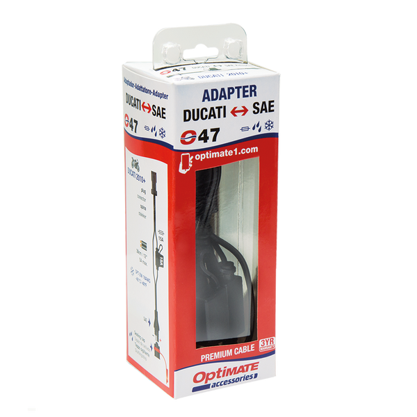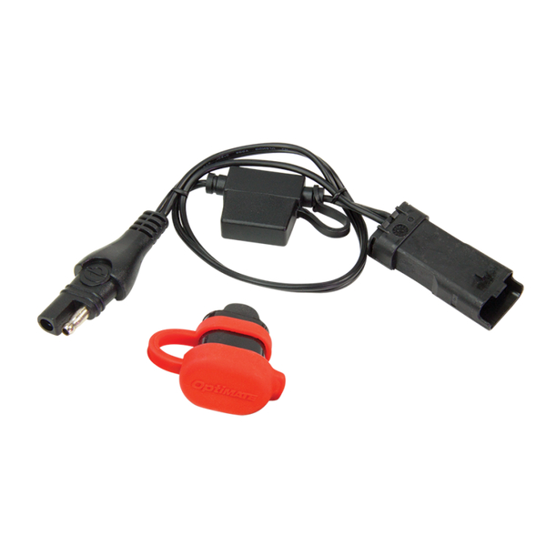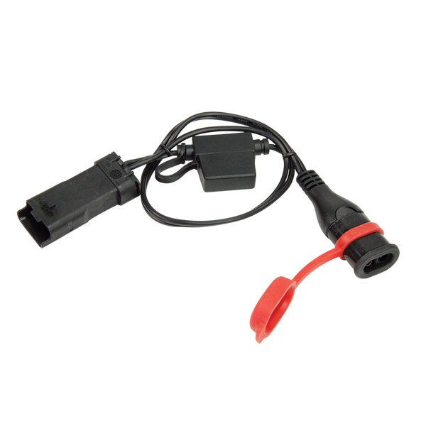 Converts the Ducati specific underseat battery charge connector (found on recent models) to an industry standard SAE 2-pole connector.