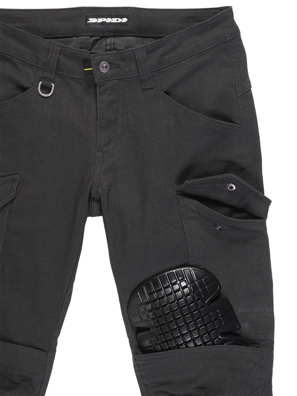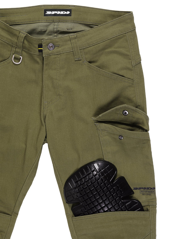 The Pathfinder Cargo Pants from Spidi suit a range of environments. The Pathfinders are as at home grabbing a late night city ride for an ice-cream cone as they are racking up four-digit mileage through the PNW. The useful cargo design with six pockets is cut on the slim side and styled with classic Spidi elegance. The fully abrasion resistant textile construction pairs well with the included knee armor - which can be easily removed from external access points while wearing the Pathfinders.