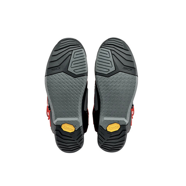 A boot that set the bar higher. Used by Pro riders in MX, hard Enduro and Superenduro, Crossair delivers all the solidity of a premium Sidi boot in just 1665 grams (size 43), making it much lighter than anything else. An internal fiberglass-reinforced esoskeleton delivers all the support and safety while maintaing an incredible light construction. Its sole compound, Materiis, has been developed together with professional riders to reach a new level of grip and durability.